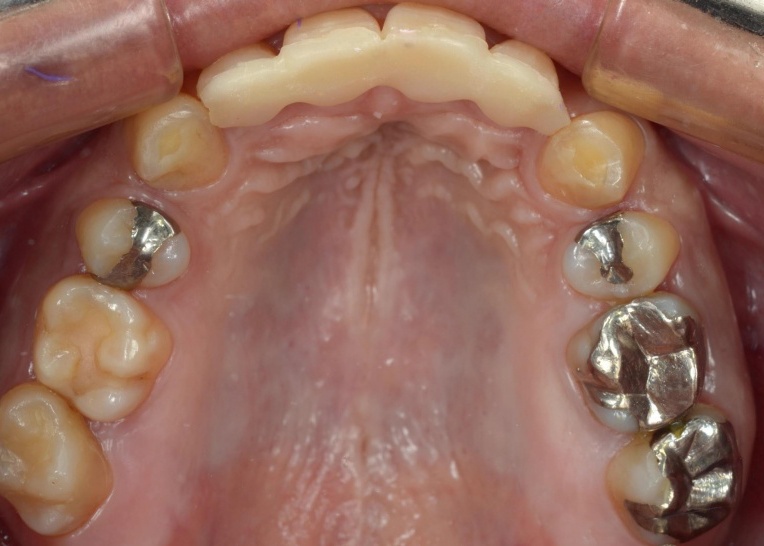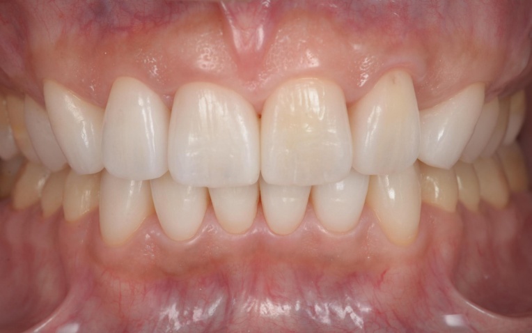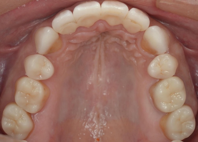 顎の位置が改善し、噛み合わせが安定したことを確認したあと、装着していた仮歯を除去してセラミックの被せ物に置き換えました。