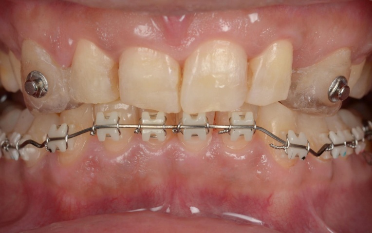 この状態で下顎にのみワイヤーを装着し、安定した下顎の位置をキープしながらワイヤー矯正治療へ移行します。